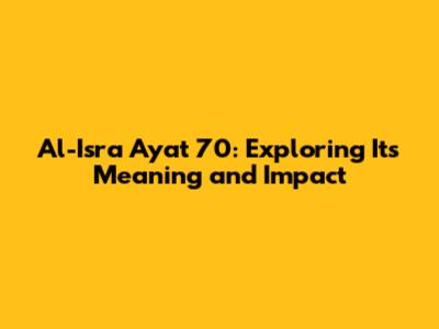 Understanding and applying Al-Isra Ayat 70 Latin and its Meaning transforms your daily life. It can make a huge impact on your outlook on life and also in the world around you.