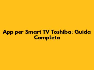 App Per Smart TV Toshiba: Guida Completa