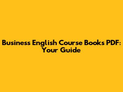 Business English Course Books PDF: Your Guide