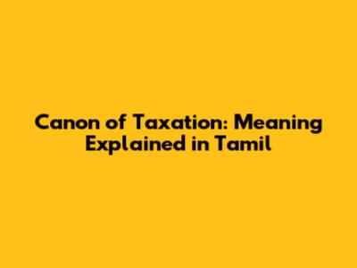 Canon Of Taxation: Meaning Explained In Tamil
