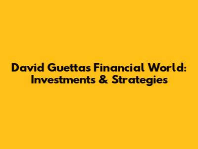 David Guetta's Financial World: Investments & Strategies