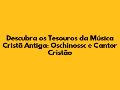 Descubra Os Tesouros Da Música Cristã Antiga: Oschinossc E Cantor Cristão