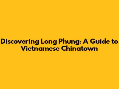 Hey guys! Ever heard of Long Phung, the vibrant Vietnamese Chinatown? If not, you're in for a treat! This place is a sensory explosion, filled with amazing food, culture, and a whole lot of heart. Think of it as a little slice of Vietnam right here, offering a unique and unforgettable experience. So, buckle up, because we're about to dive deep into everything Long Phung has to offer. I'll take you on a virtual tour, sharing tips, and tricks, and all the juicy details to make your visit absolutely amazing.