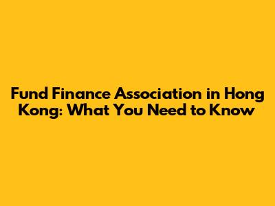 Fund Finance Association In Hong Kong: What You Need To Know