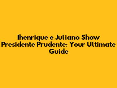 Ihenrique E Juliano: Show In Presidente Prudente - Everything You Need To Know