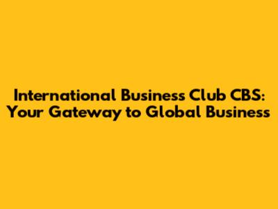 International Business Club CBS: Your Gateway To Global Business