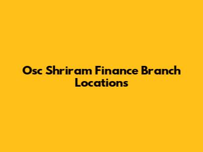 Osc Shriram Finance Branch Locations
