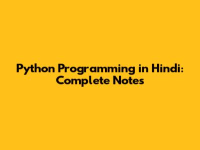Python Programming In Hindi: Complete Notes