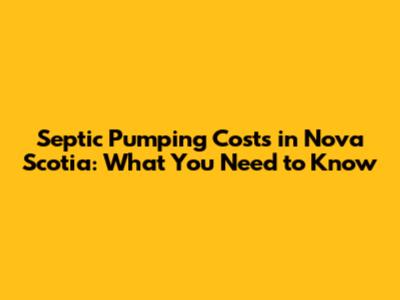 Factors Affecting Septic Pumping Costs in Nova Scotia