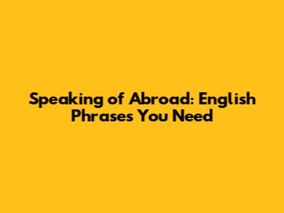 Speaking Of Abroad: English Phrases You Need