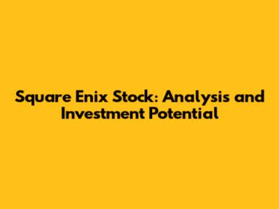 Square Enix Stock: Analysis And Investment Potential