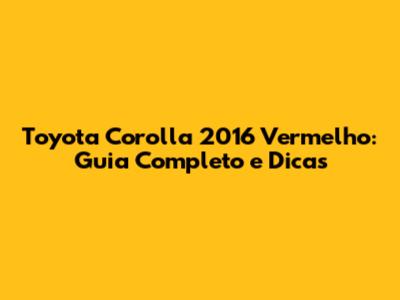 Toyota Corolla 2016 Vermelho: Guia Completo E Dicas
