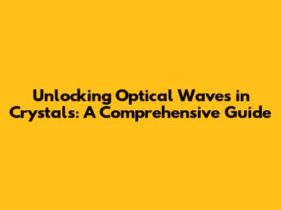 Unlocking Optical Waves In Crystals: A Comprehensive Guide