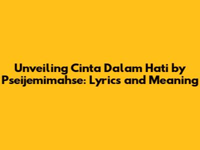 Hey guys! Ever found yourself humming a tune and wondering about the story behind it? Today, we're diving deep into the world of music and exploring the beautiful song, "Cinta Dalam Hati" (Love in the Heart) by Pseijemimahse. This song has touched the hearts of many, and we're here to break down the lyrics, the meaning, and everything in between. So, grab your headphones, get comfy, and let's get started!
