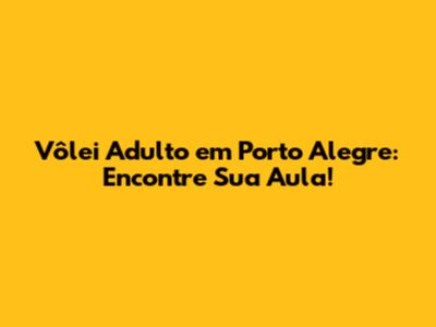 Vôlei Adulto Em Porto Alegre: Encontre Sua Aula!