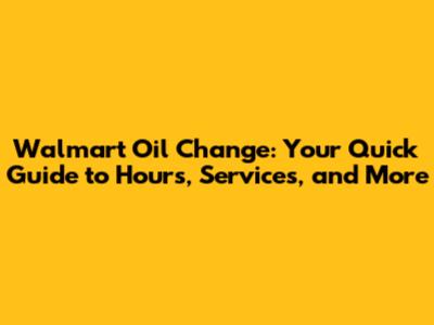 Walmart Oil Change: Hours, Services & Everything You Need
